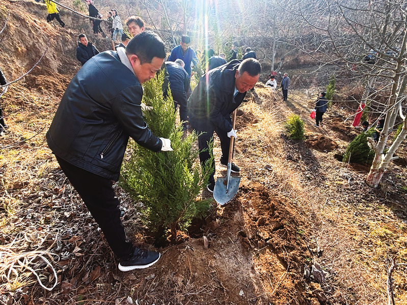 3月20日,西和县政协组织机关全体干部职工前往稍峪镇杜河村,开展2026年春季义务植树活动,以实际行动践行生态文明理念,为建设美丽西和增添绿色生机。 通讯员 鱼勇 张雅博 摄影报道