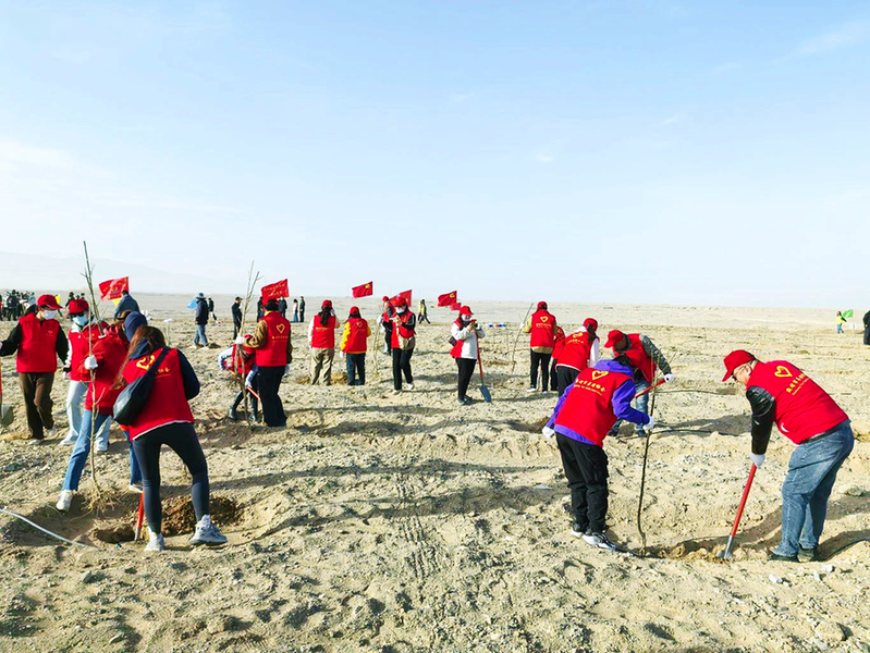 春风吹新绿,植树正当时。3月30日,敦煌市政协机关联合市导游协会赴莫高镇伊塘湖植树点开展义务植树活动,大家分工协作、并肩劳动,共栽种沙枣苗木300余株,以实际行动为美丽敦煌再添新绿。 通讯员刘富金摄影报道